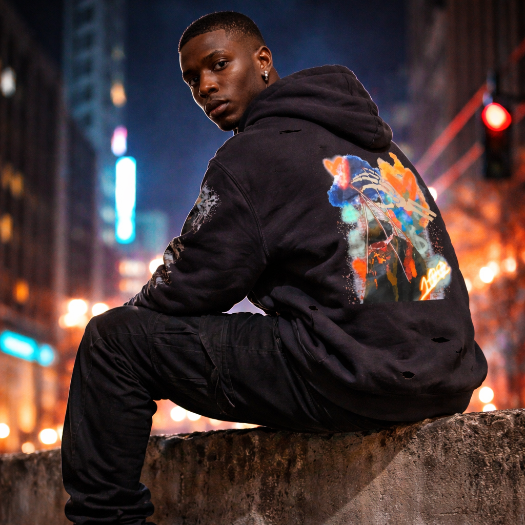 "BROKEN NOT BROKE $$$" - HOODIE (1 OF 1) GLOW IN THE DARK*